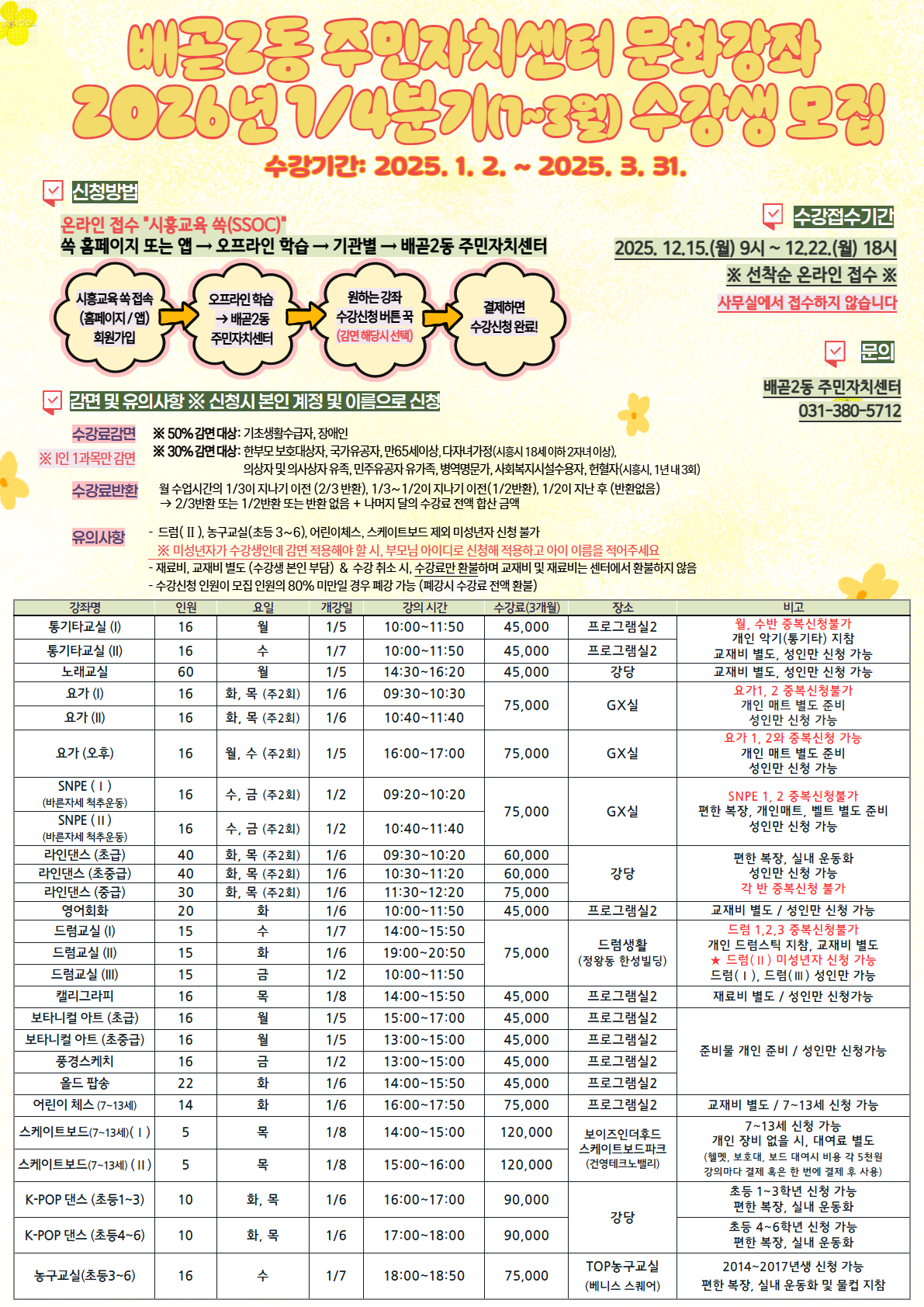 | 수강관련 문의처 | 배곧2동주민자치회 / 031-380-5712 / sms5794@naver.com |