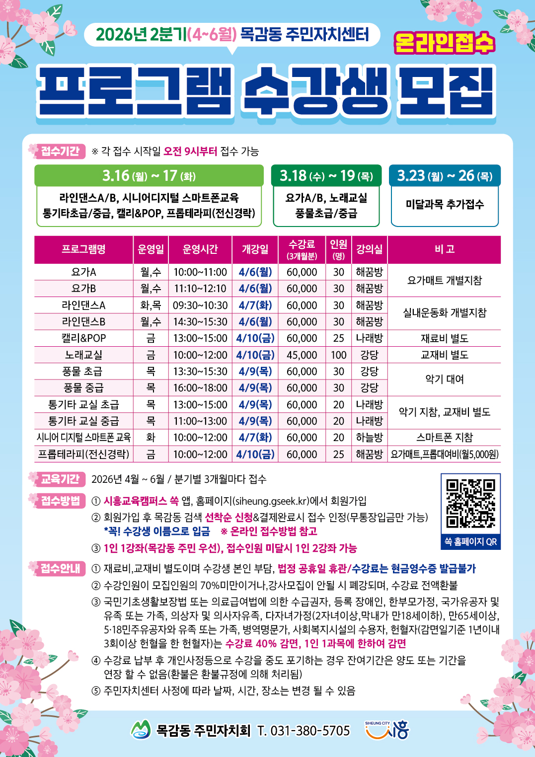 수강관련 문의처 목감동 주민자치회 / 031-380-5705 / dlgotn4835@naver.com