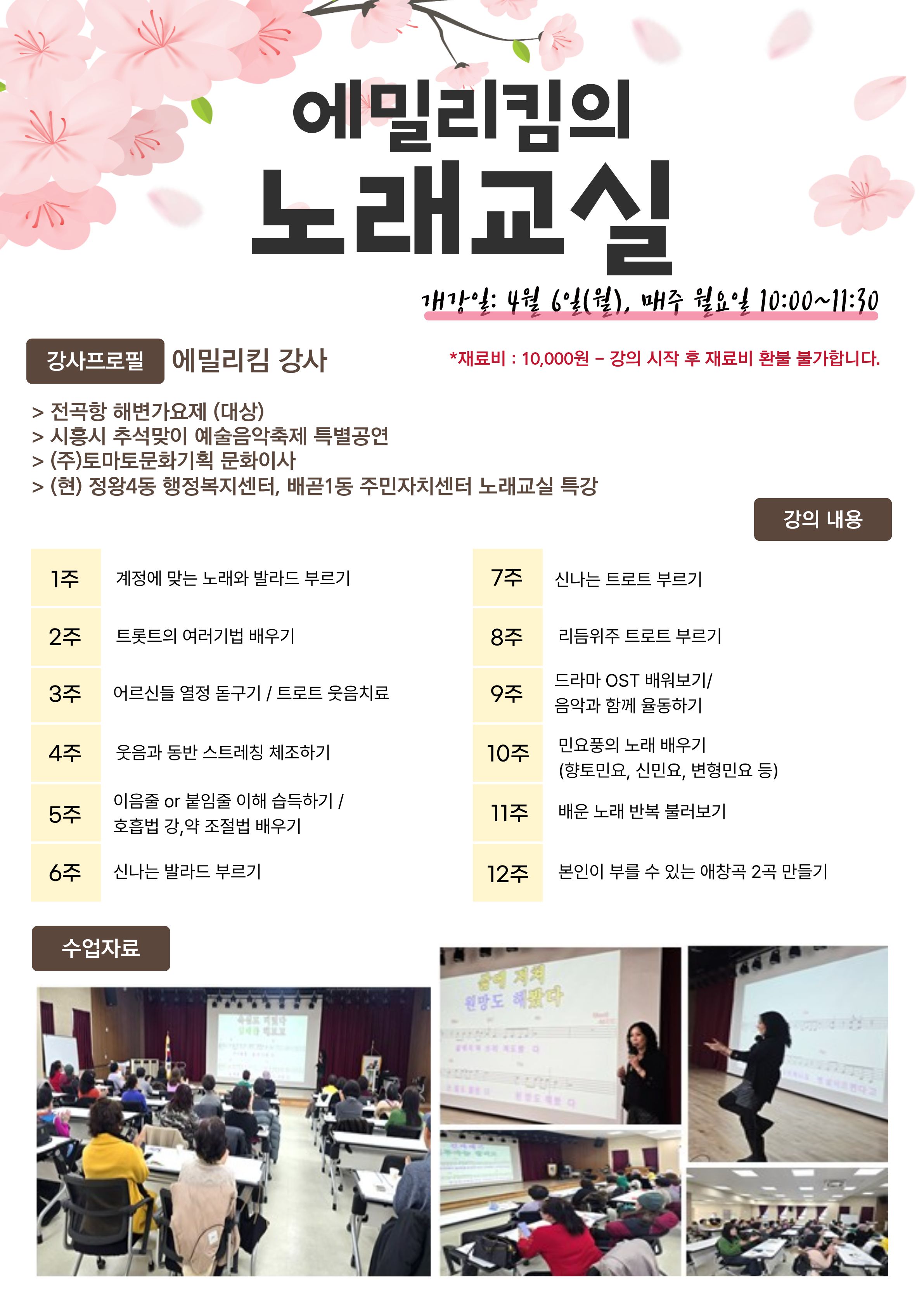 배곧1동 주민자치센터 2026년 2분기 에밀리킴의 노래교실
