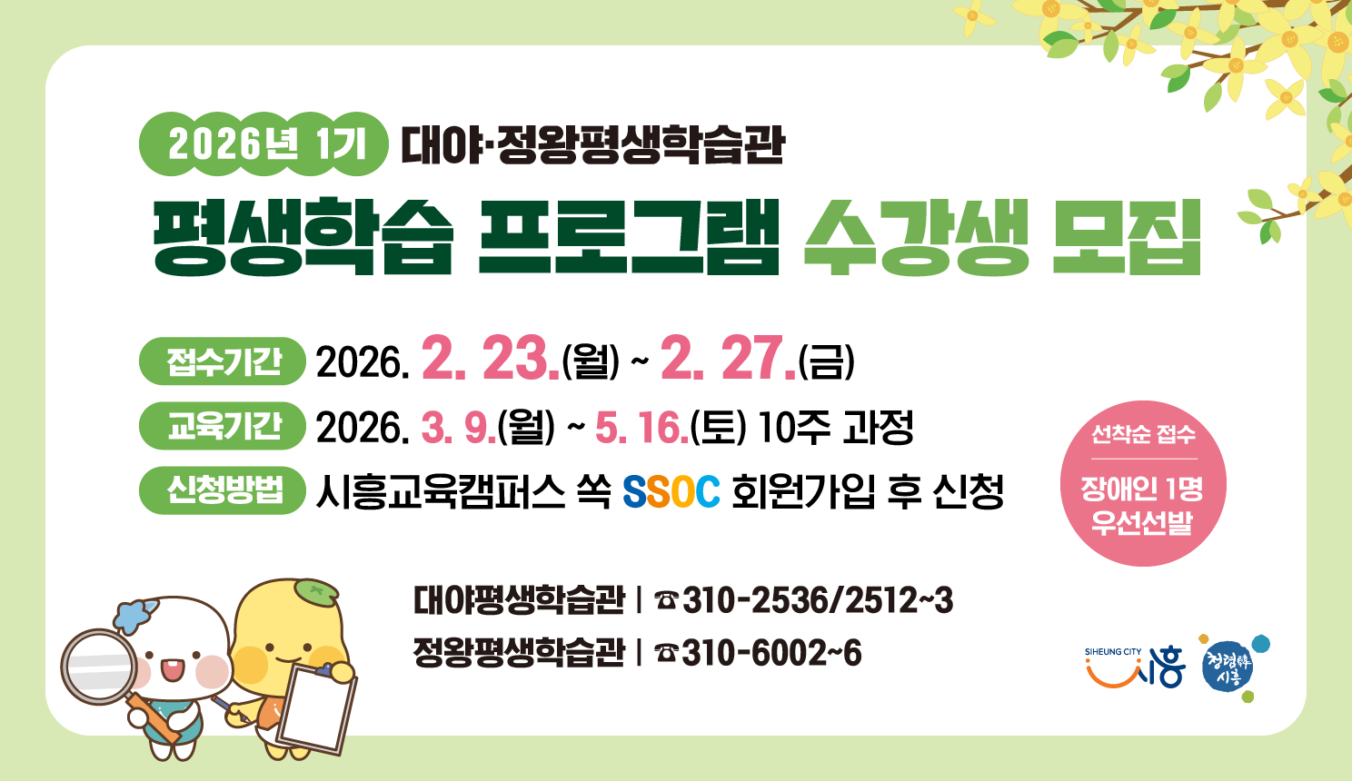 ▣ 2026년 대야·정왕평생학습관 1기 정규과정 평생학습 프로그램 수강생 모집 안내